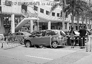 昨天上午11点半左右,一辆本田飞度小轿车在衡山路意外撞上路中央的隔离栏,小车左前侧车头受损,隔离栏被撞断(见图)。据了解,出事的小轿车当时正沿衡山路自南向北行驶,在经过明珠广场附近时,左前轮突然爆胎导致小车失控撞上隔离栏。与此同时,一辆在对向车道行驶的别克小车因闪避不及,被撞断的隔离栏摩擦到左侧车身。双方车主均无大碍。(奖励报料人纪先生50元中国移动手机充值卡)