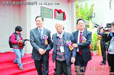 仪式上,市委书记、市人大常委会主任骆文智和国际汉学大师饶宗颐教授共同为粤东考古中心揭牌。