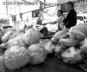 本报讯(记者黄泽春摄影报道)昨天,市区农贸市场上部分前段时间出现跳水价的蔬菜品种已有所企稳,有的还略有回升,但总体依然比较便宜。记者走访市农副产品批发中心市场及一些农贸市场了解到,最近一段时间来,市区多种蔬菜批发价下降,昨天市区农贸市场上的包菜每斤零售价为1.5元。