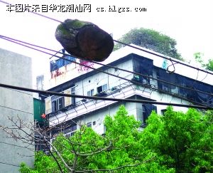 据附近一些市民称,原来这里种着树木,估计是有一棵树的枝干与这条架空线长在了一起,后因线路施工此处枝干被截肢而遗留下来。记者观察到,这块长在架空线上的木头直径长30厘米左右,而且已经干枯,树皮也已裂开,随时可能砸向人来人往的步行道。市民希望有关方面尽快清理以免发生意外。本报记者黄泽春摄