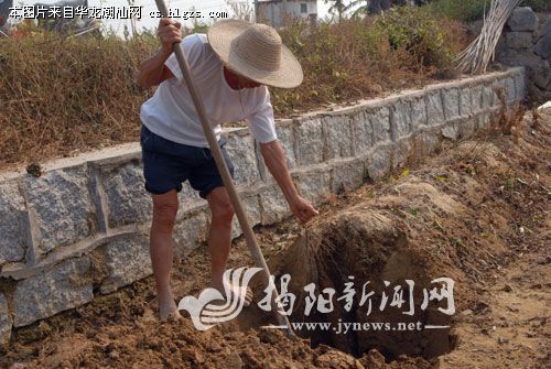 在揭东玉湖,农民向记者展示自己的劳动成果。