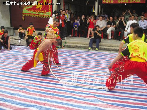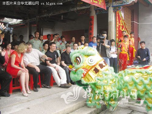 6日上午,观摩团来到渔湖京冈青狮训练基地,孙淑强狮艺武术馆为他们奉献了一场精彩的舞狮和少林功夫表演,动感十足的雄狮上高杆、少林硬气功,压轴好戏孙淑强的力顶千斤,让俄罗斯朋友们看得目不暇接,首次接触舞狮和少林功夫的亚历山大连说:“很惊讶、很惊讶!揭阳朋友们给了我一个大大的惊喜。”下午,俄罗斯朋友们兴致勃勃地表演了跆拳道功夫,博得了阵阵掌声。