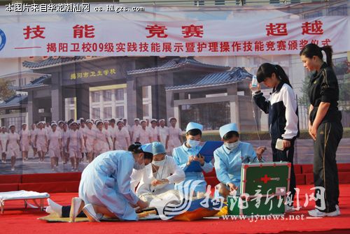 为庆祝“5·12”国际护士节的到来,激励学生“加强专业技能实训,争当实用卫生人才”,市卫生学校近日举行09级学生实践技能展示暨护理操作技能竞赛,进一步提高了学生的护理操作技能,展示了准白衣天使良好的精神风貌。