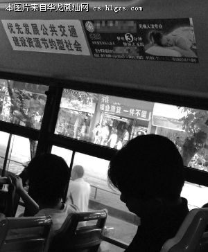 本报讯上午上学时段,公交车上挤满身穿校服的男女学生,一名十五六岁模样的男生大声念出车厢壁上的广告:xxxx根治早泄话音刚落,引来同伴一片哄堂大笑,而同车的多数人则不禁紧皱眉头,一脸尴尬。这是记者近日在市区一路公交车上看到的情景。而这并非个别现象,在市区多路公交车上均有类似不雅广告,不少市民在大叹视觉备受污染的同时,呼吁有关部门整治公交车上的医疗广告,擦亮城市流动窗口。