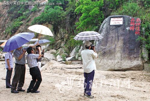 图为会员冒雨拍摄革命老区当年未完成的革命标语。黄河 摄