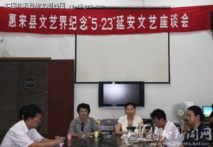 5月23日下午,惠来县召开文艺界纪念"5.23"延安文艺座谈会,该县领导及文艺界代表70多人欢聚一堂,回首过去,共话发展(上图)。