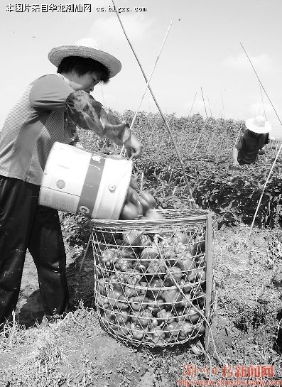 近日,湘桥区意溪镇石牌村的菜农正在采摘甜椒应市。据介绍,由于近期天气炎热等原因,市民消费锐减,造成甜椒、青椒出现供大于求现象。目前,甜椒的市场收购价为每斤1元左右,而青椒田头收购价只有每斤0.5元左右,菜农觉得很无奈。