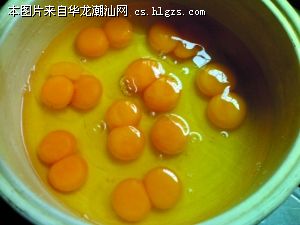 本报讯(记者郭丹林彦恂摄影报道)打鸡蛋时打出双黄蛋不是新鲜事,可连续打了8个鸡蛋都是双黄您遇见过吗?昨天上午,读者吴姐拨打本报热线电话,反映她遇到的奇事:同一板的鸡蛋竟打出了8个双黄蛋(如图)。