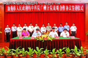 本报讯(记者林馥盛、陈静莹)昨天下午,我市举行汕头市政府与中科院广州分院战略合作协议签订仪式,标志着汕头与中科院广州分院的合作又跨入新的阶段,对于我市实施自主创新战略,推动科技创新、管理创新和商业模式创新,加快经济发展方式转变、建立以创新为内在驱动力的发展模式,再创特区辉煌都将起重要推动作用。市委书记李锋在致辞中表示,我市将以签署战略合作协议为新起点,本着优势互补、共谋发展、务实高效、互惠双赢的原则,积极主动对接,强化服务意识,拿出百分之百的诚意,拿出特区的办事效率,努力为中科院广州分院在汕头进一步拓展业务创造最好的发展环境。