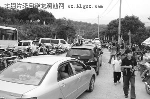 杨梅节年年热闹,今年也不例外。上午9点,距离金灶镇杨梅节开幕时间还有半个小时,通往东坑村路道上的车辆已络绎不绝,停车场内早已爆满,一位难求,不少车主只得将车停泊于道路两侧,致使原本并不宽敞的路面显得更为狭窄逼仄。10点刚过,进出车辆愈发密集,此前的三车道也骤减成单行道,车龙排至数里开外,一步一停,短短几百米的路程竟要花费半小时之久。