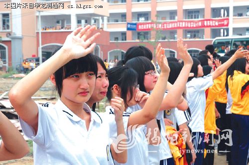 华文培训班结束当天,泰国华裔学生们含着泪依依不舍地与陪伴他们50多天的普宁职校师生们挥手告别。