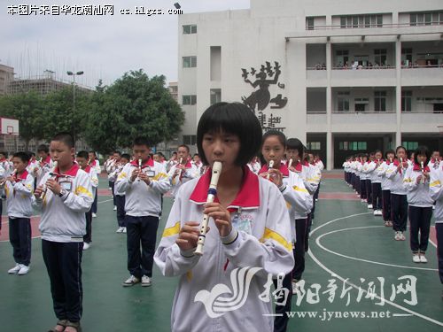 东山区岐山学校举办书法比赛、文艺汇演、游戏联谊等活动,让学生度过了一个特别的儿童节。图为学生进行竖笛表演。林锐磊 摄