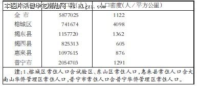 揭阳市2010年第六次全国人口普查主要数据公报