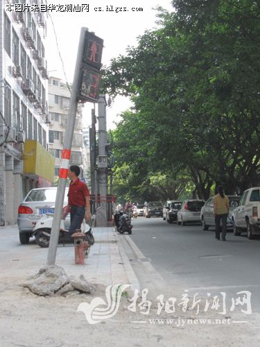 在市区同德路与临江北路交界的红绿灯路口,位于同德路西侧一交通指示灯“站立不稳”。明显倾斜出路面的交通指示灯既影响了市容市貌,也存在一定的交通隐患——如果该指示灯突然倒下砸到行人怎么办?希望有关部门尽快修复。