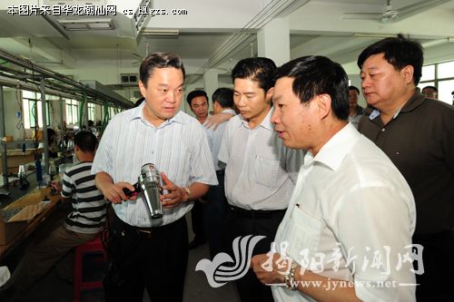 昨天下午,市委副书记、市长陈奕威在市长助理陈定雄等的陪同下,到揭阳经济开发试验区调研小家电和模具产业发展情况(见上图。涂英鹏 摄),勉励企业要高度重视自主创新,注重产品和技术研发,争创品牌商标,推进企业上市,加快转型升级,做大做强企业,走以质取胜、创新发展之路。