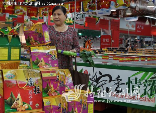 在市区一大型超市,记者看到粽子被摆到一个大龙舟型的柜台上促销,吸引了不少市民的目光。各种口味的速冻粽子和包装华丽的粽子礼盒,琳琅满目。“我和老伴都挺喜欢吃粽子,不过也怕吃多了积食。”市民李阿姨仔细地挑了五六个粽子,她笑称:“口味这么多,都挑花眼了。”