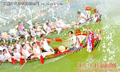 为庆祝中国共产党建党90周年,喜迎端午节到来,潮安县人民法院和潮安县庵埠镇官路村昨天联合举办了赛龙舟活动。图为“双龙夺锦”最后冲刺时桥上群众向龙舟泼水形成的精彩场面。 卢宁锐 摄