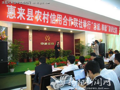 首先是抓好职工培训,努力提高员工的综合素质。先后举办了新会计准则、反假货币、员工礼仪规范、数据大集中等培训班和劳动竞赛,进一步增强员工服务意识和服务质量,提高业务操作技能。自2008年至今年5月份共举办培训班44期,参训员工1700人次。其次是丰富内涵,开展形式多样的企业文化活动,提升企业形象。大力弘扬“爱岗、敬业、无私、奉献”的农信社文化理念。联社于去年5月1日举办以"忠诚、奉献"为主题的演讲比赛(见图,邓汉朝 摄),树立全员"忠诚、奉献"的新理念,使全体员工增强信心,凝心聚力推动农信事业科学发展。为庆祝新中国建国60周年,展现惠来县农信联社新时期员工团结协作、爱岗敬业、诚信亲和、奋发向上的精神风貌,2009年 9月27日晚在联社会议厅隆重举行了“祖国在我心中”文艺晚会,为新中国建国60华诞献上一份最真诚的礼物。去年,县联社分二次协作了“庆新春、迎亚运”2010年惠来县“农信杯”男子篮球邀请赛和“庆国庆、迎亚运”惠来县“农信杯”男子篮球赛,联社代表队均获得第一名,此举获得了县委、县政府及有关部门肯定,同时也展示了该县农信社员工的精神风貌。再次是进一步调整和优化人力资源结构,推进人事制度改革,加大人才引进退出力度,提升干部队伍的整体综合素质。公开招聘一批大专院校以上的应届毕业生充实基层一线力量;营造公开、平等竞争、择优的用人环境,选拔一批中层干部,打造核心竞争力;做好“四好班子”创建活动,扎实抓好各级领导班子任期经营目标考核工作,提高各级领导班子战斗力。