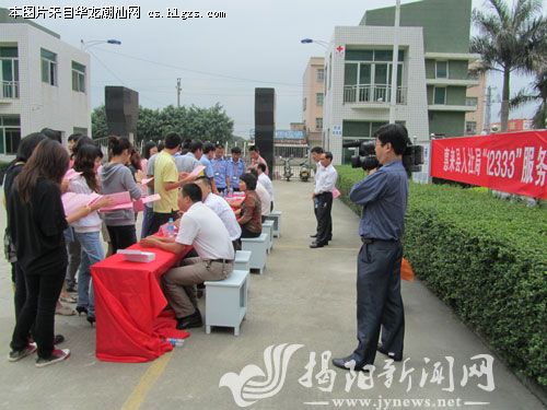 近日,惠来县人力资源和社会保障局分别在县城葵阳影剧院门口(见图,通讯员摄)和葵阳加工区、源瀚制衣有限公司、春南电器厂等厂区举办“12333”服务热线现场咨询活动, 为劳动者面对面提供咨询服务。