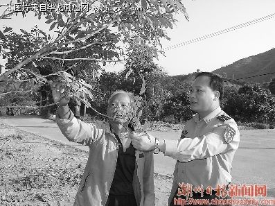 潮安县人武部认真做好扶贫工作,该部官兵经常深入到扶贫挂钩点登塘镇新西坑村的扶贫对象家中,积极帮助村民解决实际困难,为争取早日脱贫献出自己的一份力量。图为潮安县人武部干部日前在新西坑村与扶贫对象一起察看果树等农作物生长情况,共商经济发展大计。 安武 摄