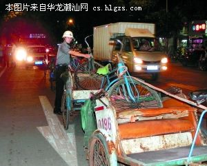 昨晚,联合整治队伍来到南国商城门口,发现几辆人力三轮车混杂在候客的出租车边上候客营运,执法人员上前拦停,现场查处了4部无牌无证的人力三轮车。随后,1个多小时的时间里,执法人员在华山路、长江路、衡山路、天山路等处,查获了数十部人力三轮车。据市城管行政执法局副局长王战涛介绍,目前我市已经有超过400部人力三轮车主动上缴,现在距离人力三轮车回收期限6月15日剩下的时间不多,城管部门将通过市区两级联动的方式,加大对人力三轮车的整治力度,希望广大人力三轮车经营者要认清形势,打消等待观望和侥幸心理,尽快在规定期限内到市城管局设立的两个回收点上缴车辆,领取车辆回收补偿金;对在规定期限内未主动上缴车辆,继续上路行驶的,市城管执法局将依法予以查扣,经营者也不再享受车辆回收补偿。