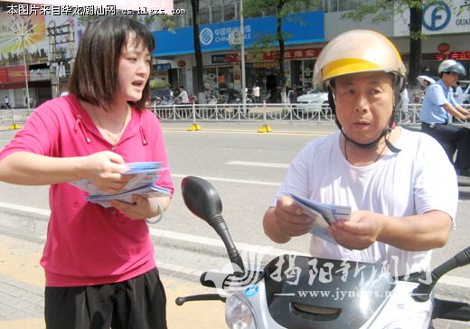 工作人员向过往市民分发食品安全资料。孙燕銮 摄