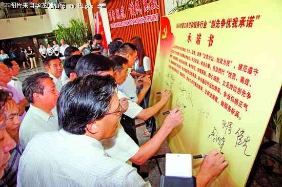 本报讯(记者李岱娜)昨天上午,全市窗口单位和服务行业创先争优我承诺活动在市行政服务中心正式启动,56个进驻单位在承诺书上郑重签名,承诺争当服务社会、服务群众、服务工作对象的表率,让群众满意,做服务标兵。市委常委、组织部部长李学同在仪式上向各区县委创先争优活动办公室、市直机关工委、市委非公企业工委、市经信局党委和市行政服务中心授予服务社会、服务群众、服务工作对象旗帜。