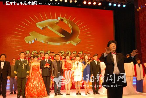 为庆祝中国共产党成立90周年,讴歌中国共产党带领全国各族人民推翻三座大山,建立新中国,实行改革开放,不断提高人民生活水平的丰功伟绩,昨天晚上,由市委宣传部、市委组织部、市直工委主办,揭阳广播电视台、市教育局、市文广新局、团市委承办的“颂歌献给党——揭阳市纪念中国共产党成立90周年文艺晚会”在市区榕江影剧院隆重举行(见图。郑楚藩 摄) .市领导陈奕威、欧汉波、杜安义、陈石波、王德坤、许佩君、谢峻、贾拾生、孙锐卿、叶少明、陈朝盛,市纪委副书记、监察局长林惠松,市纪委副书记陈岳泉等观看了演出。