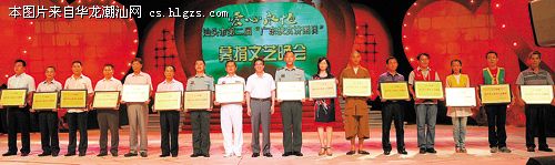 上图:李锋为荣获汕头爱心慈善奖的个人和单位颁奖。