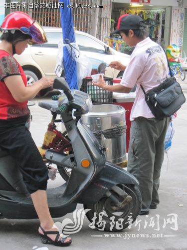 “草@!豆腐花!……”夏至过后,正是潮汕民间传统小吃“草@”热卖的时节。在惠来的大街小巷,卖草@的小贩来回穿梭,叫卖声不绝于耳。笔者走访发现,尽管今年草@的价格有所提升,但购买的顾客仍然不少,生意很是红火。