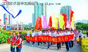 上午7时50分,伴随着《爱的奉献》动人旋律的响起,各单位队伍高举旗帜,先后精神抖擞地出发。沿着海滨路望去,五颜六色的人流与绿荫交织出一幅亮丽的图画。从人民广场到华侨公园,一条巨龙整齐前行,秩序井然。一名行经此处的大学生掏出手机拍下了这一幕,推动慈善是社会的进步,社会各界都应该积极参与爱心慈善活动。他说。