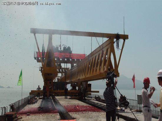 据了解,南澳大桥第四标段在继去年同月完成全部593根钢管桩沉桩任务的基础上,今年抢抓台风季节来临的有效施工时段,不分昼夜推进海上施工,现累计完成承台120个,墩身118个,墩身高从5米到34.6米不等。目前,南澳大桥第二标段已完成全部钻孔灌注桩、承台施工,架设35米箱梁252片。35米箱梁重183.8吨、3片梁连成一跨。随着向第四标段施工的跨入,45米箱梁架设将是南澳大桥海上施工的又一工作重点。45米箱梁重265.7吨,共跨架设264片,预计可以4天一跨的速度向前推进。