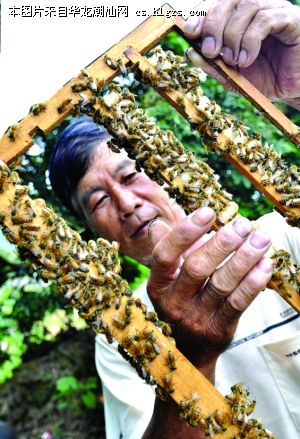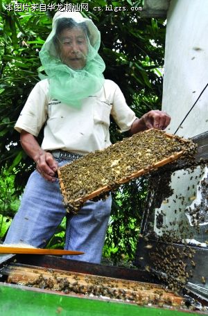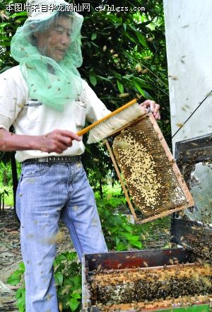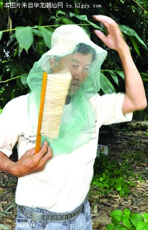 养蜂户陈鑫城今年58岁,20多岁开始养蜂。老陈在他的果园里养了十多橱蜜蜂,每橱有近万只蜜蜂。平时,老陈要经常清扫蜂巢中的垃圾和死蜂,每半个月给蜜蜂除一次螨虫。由于长年和蜜蜂打交道,他对蜜蜂的习性和脾气了如指掌。每巢蜜蜂的性格都不一样,有的比较老实,有的生性野蛮。老陈说,如果花期气候条件好,蜜蜂就不会轻易蜇人,而碰到阴雨、炎热天气,蜜源少时,蜜蜂的性情就变得有些烦躁,容易蜇伤人。