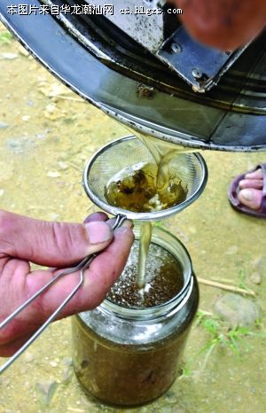 甩出来的蜂蜜经过过滤,这样,割蜜的过程基本就完成了。将鼻子凑近蜂蜜一闻,一股淡淡的花香沁人心脾。老陈告诉记者,一橱蜜蜂大概能收割十来斤蜂蜜。如果天气晴好且碰上花期,几天就可以收割一次蜂蜜。