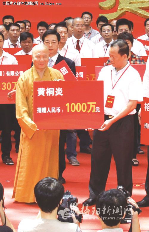 6月24日,在揭阳市招商引资暨捐赠大会上,他又慷慨捐资1000万元支持榕江观音阁建设,捐资260万元资助东山区营前村修村道。