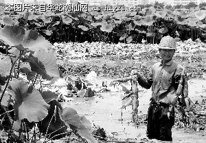 接天莲叶无穷碧,映日荷花别样红。龙湖区新溪镇上三合村有一大片低水田,农民谢先生在这里种了140亩莲藕并在田边置搭一间简易工棚请来几名工人专心经营。目前开始陆续挖出莲藕供应市场。今年种莲用新品种比去年好如果风调雨顺估计亩产有2800斤并有十头八万元纯收入,谢先生如是说。