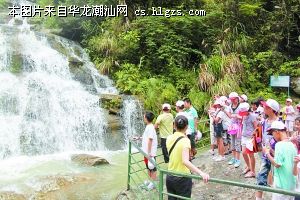 另一路小记者则来到揭阳市揭西黄满石祭瀑布群,由黄满石祭瀑布、银河飞瀑和三叠瀑布组成山间瀑布飞流直下,两边岩石高起,瀑布像一条玉带凌空飞舞般翩跹而下,令人叹为观止。面对此情此景,小记者们纷纷拿起手中的相机,将眼前的一幕记录下来,定格在相机中。