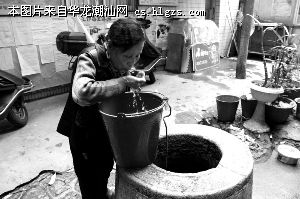 近日下午,记者几经询问终于找到小张所说的水井。这口位于三让路14号附近的水井系土砖水泥结构,井身高出地面近1米,井口直径约有0.5米,俯视井中,饮料瓶、树枝等垃圾杂物覆盖整个水面。记者找来一根竹竿拨动垃圾,发觉杂物下面仍涌动着井水,不过却散发出阵阵异味。