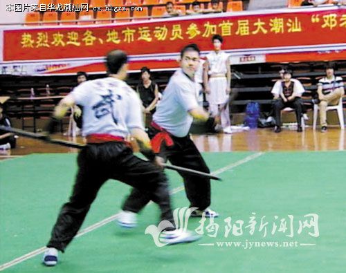 在潮汕体育馆举行的这次大赛,汇聚了粤东的武馆、武校和武术队,还吸引了来自法国及香港、四川等地的习武者,共有1600多名武术高手参赛,包括拳术、器械、对练等集体、单项比赛,规模可称潮汕武术史之最。