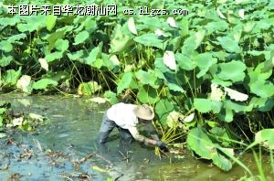 林旭文说,莲藕种下后,只需播两次肥料就能收成,但特别怕晒伤和台风。因此,平时要经常为莲池、莲田换水,保证池底水份不干涸,防止莲叶被晒伤枯萎。而台风产生的猛烈风力能将莲叶、莲花刮折,无法再进行光合作用,本可以陆续收成5个月的莲藕,必须赶在一个月内收完,集中上市导致价格偏低。