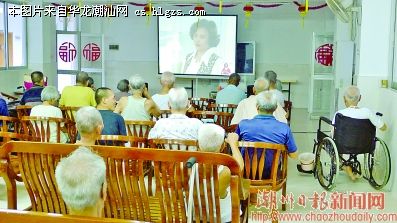图为市颐养中心的残疾人和孤寡老人正在观看无障碍电影《儿女情长》。
