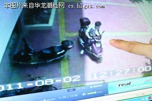 根据唐先生提供的视频,记者看到,昨天中午12点22分,唐先生工厂前的人行道上出现一辆男式摩托车,车上有两名男青年,在经过该工厂门口时,两人同时向工厂的楼梯间处张望,其中一人身着白色衬衫黑色裤子,另一人则身着整套浅色衣服。