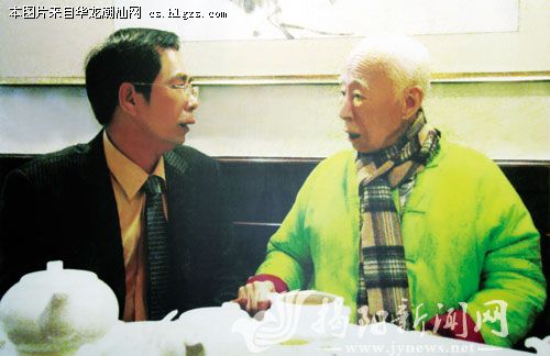 2009年春,彭妙艳(左)与国学大师饶宗颐在探讨揭阳楼建设问题。