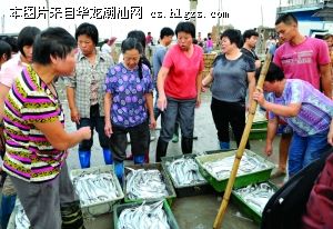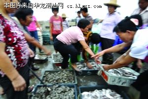 在离码头不远的海面上,记者看到,不时有达濠、饶平等地的渔船驶入港区停靠,也有一些渔民利用小船,把捕获的海产品从渔船上转运到岸上的水产品交易市场进行交易。