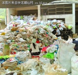 据当地居委会黄书记介绍,这家工场一年多前就搬到这里,是租借当地居民的场地。塑料袋全是工场主从乡下等地方收购来的包装海鲜或其他东西的废塑料,堆积在工厂内,天气炎热,这些塑料袋发出死尸一样的腐臭味。塑料袋先由工人进行拆解、分类,再用机器从工厂前面的D济河里抽水上来清洗,然后又直接把废水排入D济河。记者看到,所有的操作程序都是在露天、没用任何环保设备的条件下进行的。一些已经被加工裁成条状的废塑料又捆扎好堆在工场右边的空地上,准备要运走。现场苍蝇飞舞。