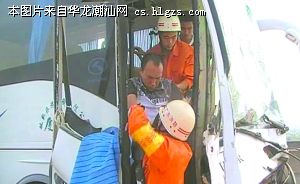 当时现场一片狼藉,大客车的车头已经被撞得面目全非,车身零件散落一地,汽车玻璃整片粉碎、散落一地。由于车门被撞坏无法打开,车内40多名乘客全都无法下车,驾驶室的一名司机两脚被压在车座底下,被卡在车内动弹不得,痛苦万分。消防官兵们先是利用液压剪、砂轮锯等工具将变形的车门剪开,成功打开了车门,救出了被困乘客。所幸乘客之中只有一名小女孩的嘴巴被撞出了血,并无大碍。接着,救援人员又消防人员使用破拆工具对驾驶室进行破拆,将司机从车内解救出来。司机双腿被严重夹伤,所幸没有生命危险,立即被送往医院救治。事故原因有待进一步调查。(奖励报料人陈先生50元移动手机充值卡)