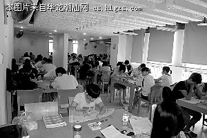 在图书馆五楼工作的管理员告诉记者,这个暑假来自修室学习的学生特别多,主要是奋战高考的学生,还有部分初中生。每天还未开馆,就可以看到很多学生在图书馆外面等候。记者看到,明净宽敞的自修室座无虚席,很多学生正埋头奋笔疾书;也有学生拿着复习资料正认真思考;也有学生拿着厚厚的书本在背诵,嘴里念念有词;也有几个坐在一起小声讨论的。在丰华学校读初二的小萧告诉记者,这个暑假她都呆在图书馆复习,感觉这里很安静,很凉爽,学习氛围很好。