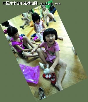 下课了,小家伙们把拉丁舞鞋脱掉,换上自己的鞋子。
