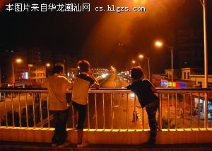 深夜的城区因为太阳的谢幕而明显凉爽了不少,不少市出门纳凉、宵夜、透气夜汕头一片热闹红火。在市区长平路、中山路、龙眼路,夜色下的大排档蔚为壮观,热气蒸腾的炉灶以及香味诱人的各式菜肴气味,都莫不强烈刺激着过路人的味蕾。而迎宾路附近的酒吧街,更是热浪阵阵,各家酒吧里都是人头晃动,穿梭来往的红男绿女身影折射出青春的魅力。夜幕下的马路因为机动车流量减少显得有点空旷,这也为那些驾驶着排气管经过改造能发出呼呼吓人声响的摩托飙车族提供了赛车的舞台,他们三五成群,嘻嘻哈哈驾驶着摩托车在马路上摇摆前进,听到路人为避让他们而发出的惊叫声更是兴奋异常,加速前进。凌晨1时多,在市区金砂东路,一辆闯道左拐的摩托车和直行的汽车发生了亲密接触,摩托车晃了几晃,幸好没摔倒地上,但是驾车的飙车者恐怕被擦伤了车头的汽车驾驶员索赔,不顾前后车流加大油门快速逃走了。一些黑三轮也趁着夜色出来,在街头跑得飞快;闪着霓虹灯光的成人用品店在深夜中也十分夺目,匆匆出入的顾客蒙上了一层神秘身影;龙湖沟旁,赤膊的牌友夜战正酣,身旁围观的高参们在牌局关键时刻也忘记了观者不语,忍不住出口指点,违规动作更是加剧了战场激烈氛围。