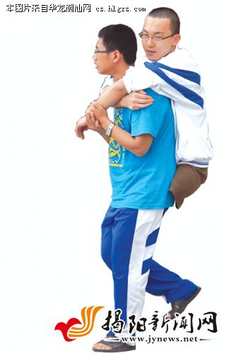在揭阳一中,林滨沐浴在浓浓的关爱中。不仅有同学们的帮助,学校在经济上也给予支持,减免了他高中三年的学费。当林滨的父亲失去开三轮摩托车载客的工作时,学校领导让他的父亲到校做临时工以方便接送他。去年他考上大学,揭阳一中专门去函与肇庆学院联系,介绍林滨的情况,希望大学校园延续爱心接力,给予林滨“爱”的关怀。
